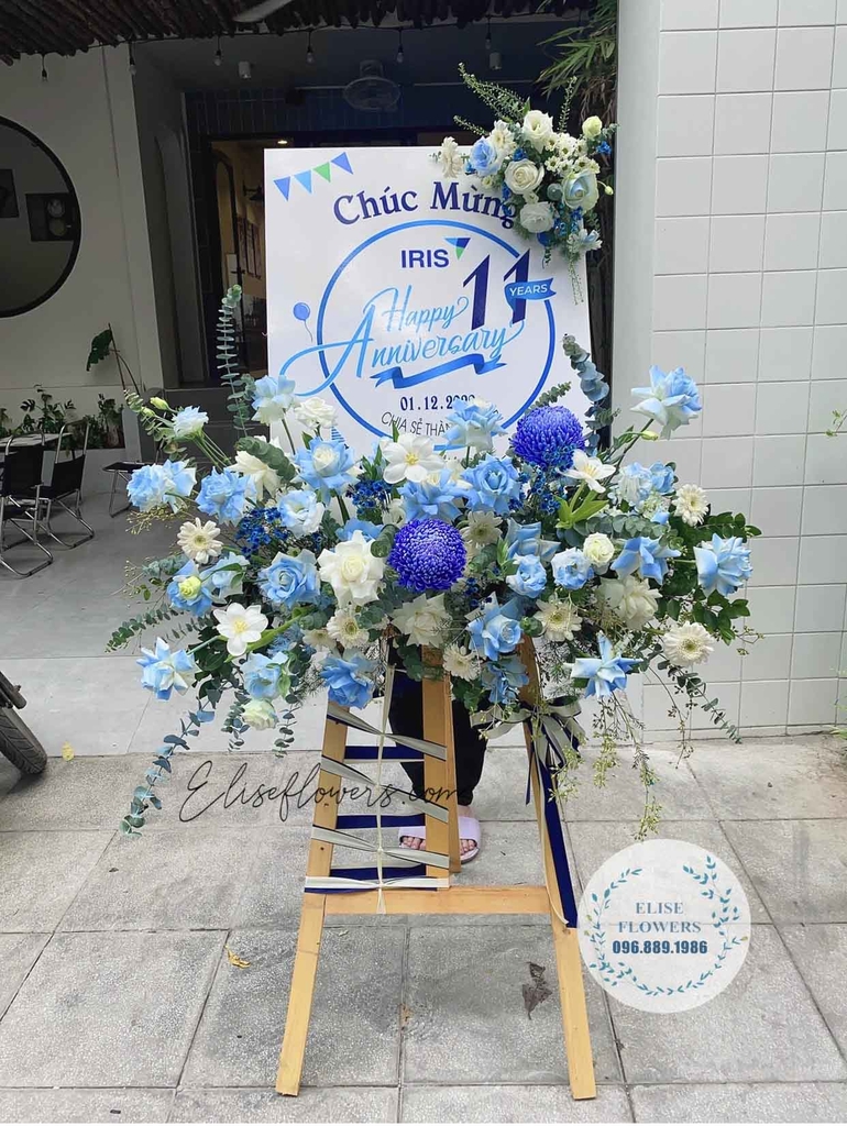 Bảng hoa chúc mừng khai trương phong cách Hàn Quốc hiện đại | Bảng hoa chúc mừng màu xanh dương ý nghĩa