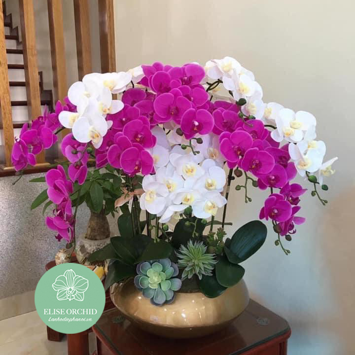 Chậu lan hồ điệp 11 cành màu đa sắc (tím trắng) |HĐ - 07 | Elise Orchid