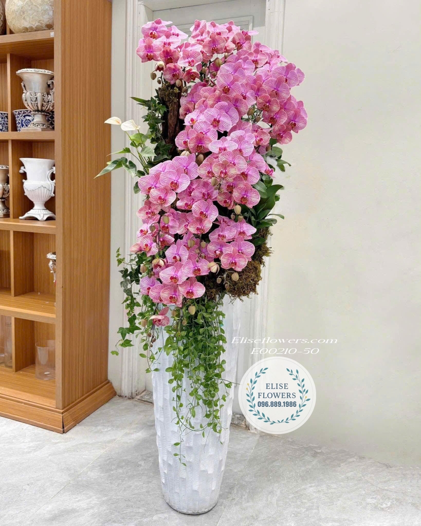 Kiểu dáng ấn tượng: Hàng trăm bông lan được sắp xếp khéo léo thành một ngọn tháp hoa cao vút, đầy uy nghi. Thiết kế này đặc biệt phù hợp để đặt tại sảnh công ty, phòng họp hay văn phòng, tạo điểm nhấn đẳng cấp.