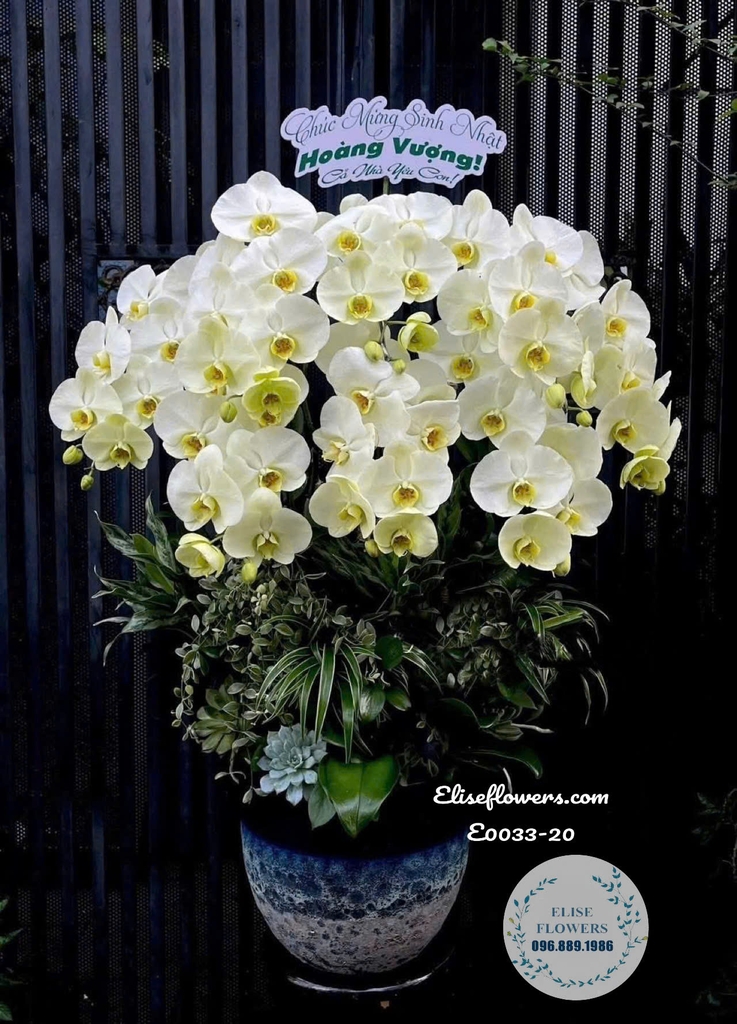 Thiết Kế Chuyên Nghiệp: Tại Elise Flowers, mỗi chậu lan đều được nghệ nhân cắm hoa tỉ mỉ, kết hợp hài hòa cùng chậu gốm cao cấp và các loại cây lá phụ trợ, tạo nên một tác phẩm nghệ thuật hoàn hảo.