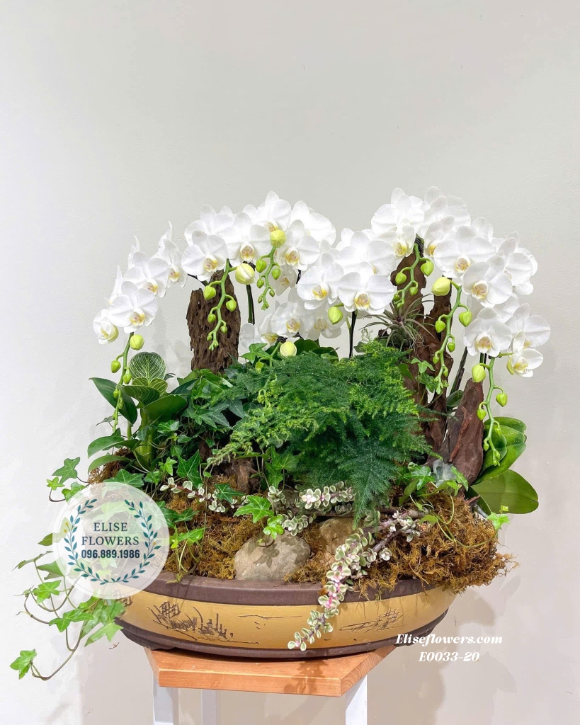 Lan Hồ Điệp Cao Cấp Tại Hà Nội. Mẫu Lan Hồ Điệp Trắng Ghép Lũa Độc Đáo Trang Trí Phòng Khách| Eliseflowers.com, Lanhodiephanoi.vn