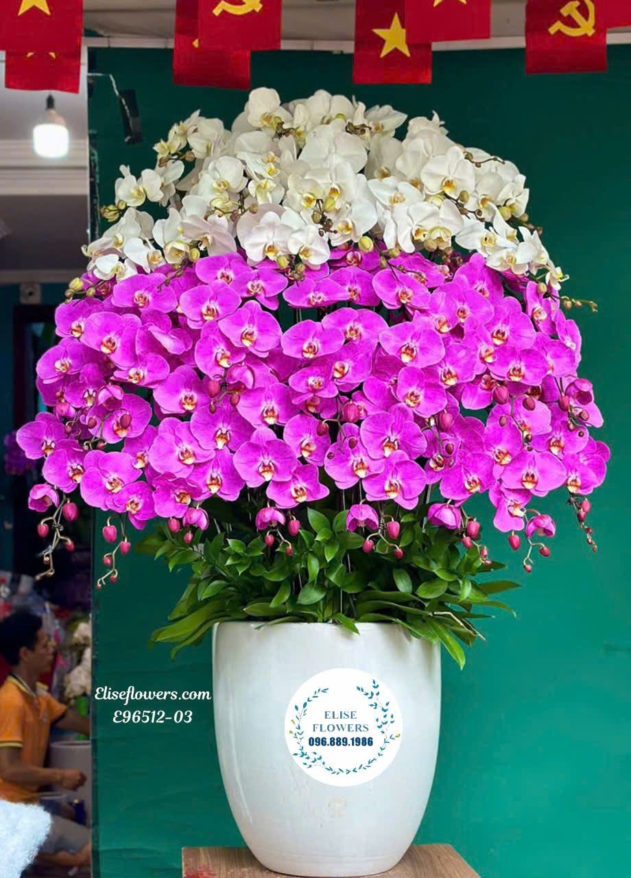 Bạn đang tìm kiếm một món quà tặng sự kiện thật đặc biệt, hoành tráng và mang ý nghĩa sâu sắc để chúc mừng những cột mốc quan trọng? Chậu lan hồ điệp 35 cành cao cấp với sự kết hợp tinh tế giữa sắc tím và trắng từ Elise Flowers chính là lựa chọn hoàn hảo, thể hiện trọn vẹn lời chúc mừng thành công, thịnh vượng và sự phát triển bền vững.