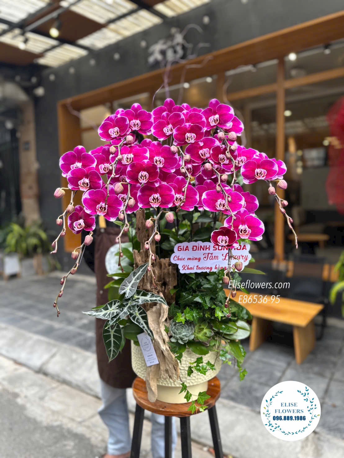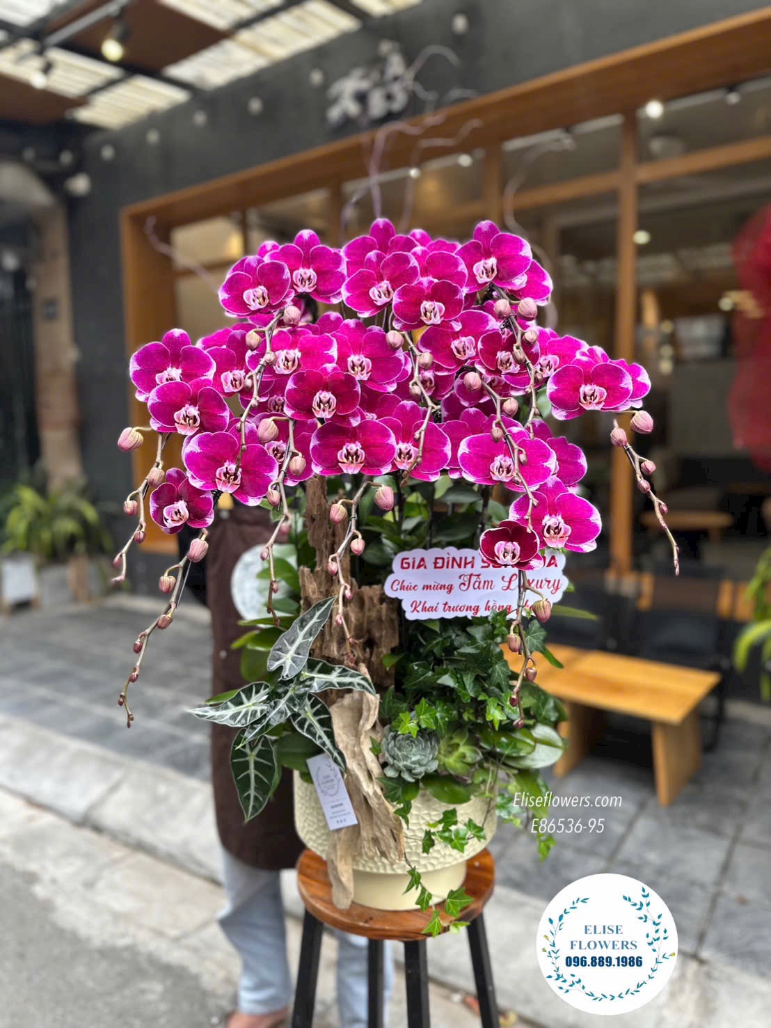 Bạn đang tìm kiếm một món quà khai trương đẳng cấp, hội tụ đủ yếu tố thẩm mỹ và phong thủy để gửi tặng đối tác, khách hàng tại Thủ đô? Chậu lan hồ điệp tím ghép lũa nghệ thuật từ Elise Flowers chính là tuyệt tác mang thông điệp "Khai trương hồng phát", khẳng định vị thế và gu thẩm mỹ tinh tế của người tặng.