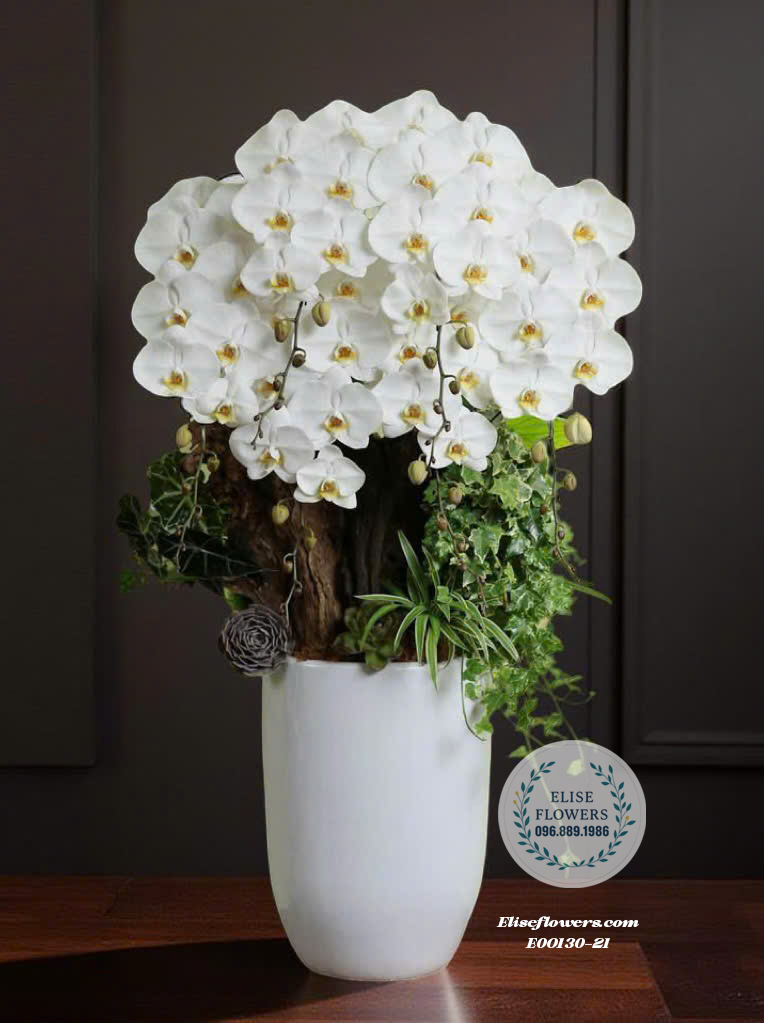Lan Hồ Điệp Hà Nội. Chậu Lan Hồ Điệp Trắng Phối Lũa- Vẻ Đẹp Sang Trọng Và Thanh Khiết Cho Mọi Không Gian| Eliseflowers- Dịch Vụ Điện Hoa Tươi, Lan Hồ Điệp Cao Cấp Tại Hà Nội
