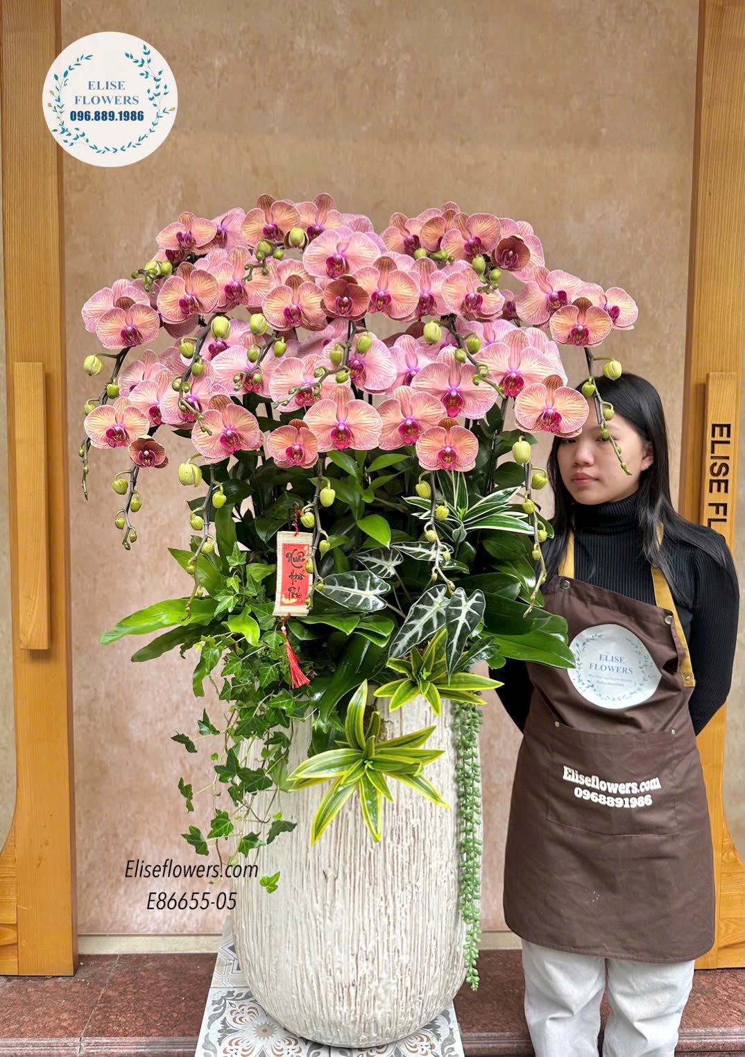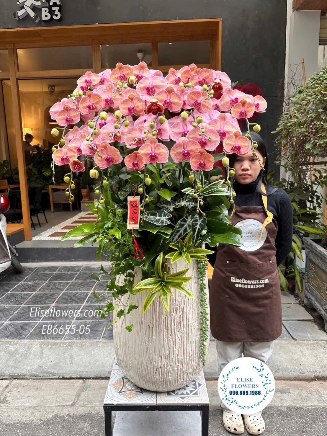 Chậu lan hồ điệp cam đào sang trọng. Lan hồ điệp chơi tết sang trọng, phong thuỷ. Điện hoa Hà Nội Elisefloewrs